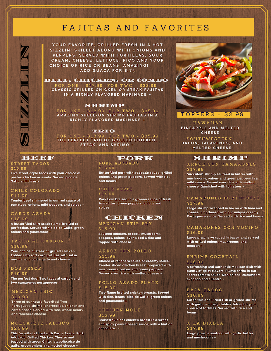 Welcome to 3 Margaritas Co. Springs / Fountain, a beloved local gem nestled at 2 Widefield Blvd, Colorado Springs. Celebrated for its family-friendly atmosphere and rich, vibrant flavors, this establishment is a standout in the area. Locals rave about the generous portions and authentic Mexican cuisine, particularly highlighting their renowned refried beans, which have left many patrons craving more.